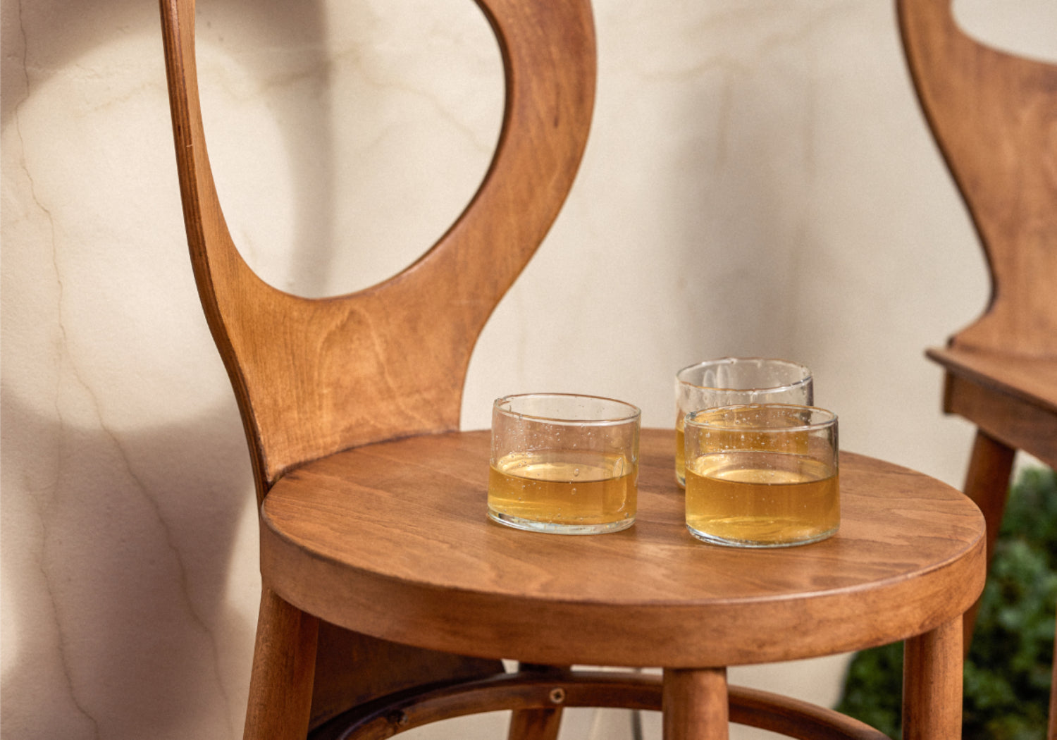 Unsere Gläser sind mundgeblasen. Um den Blasen-Effekt zu erzeugen, streuen die Mundbläser etwas Pulver (Natrium) auf das geschmolzene Glas, bevor sie ihnen ihre Form geben. Da es sich um eine echte Handarbeit handelt, sind Menge, Größe und Platzierung der Blasen von Stück zu Stück absolut einzigartig.