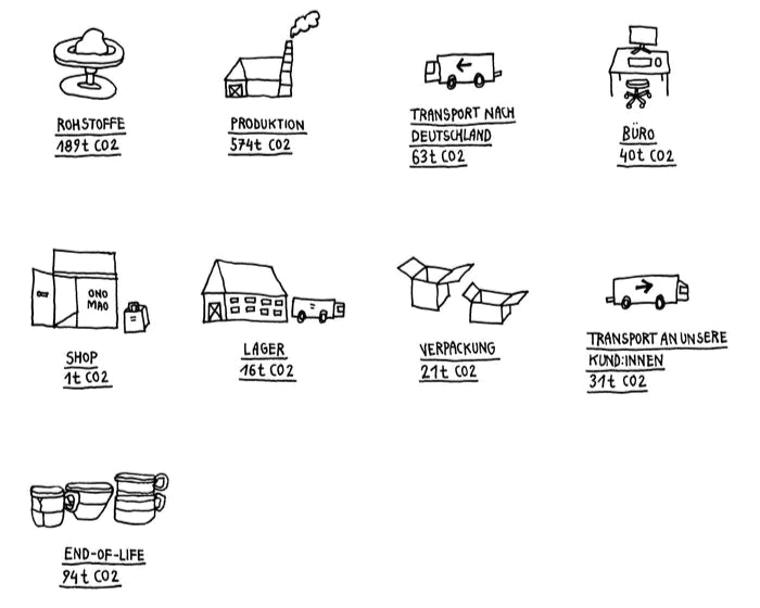 First, we recorded all the emissions we caused along the entire value chain last year: From raw materials to production and transport to use and finally, disposal of our products. Then, in order to be able to take a holistic view of emissions, we obtained information on our production sites in Portugal, on all transport and delivery routes, and on our Cologne site, consisting of the office, warehouse and our small store on Venloer Straße.