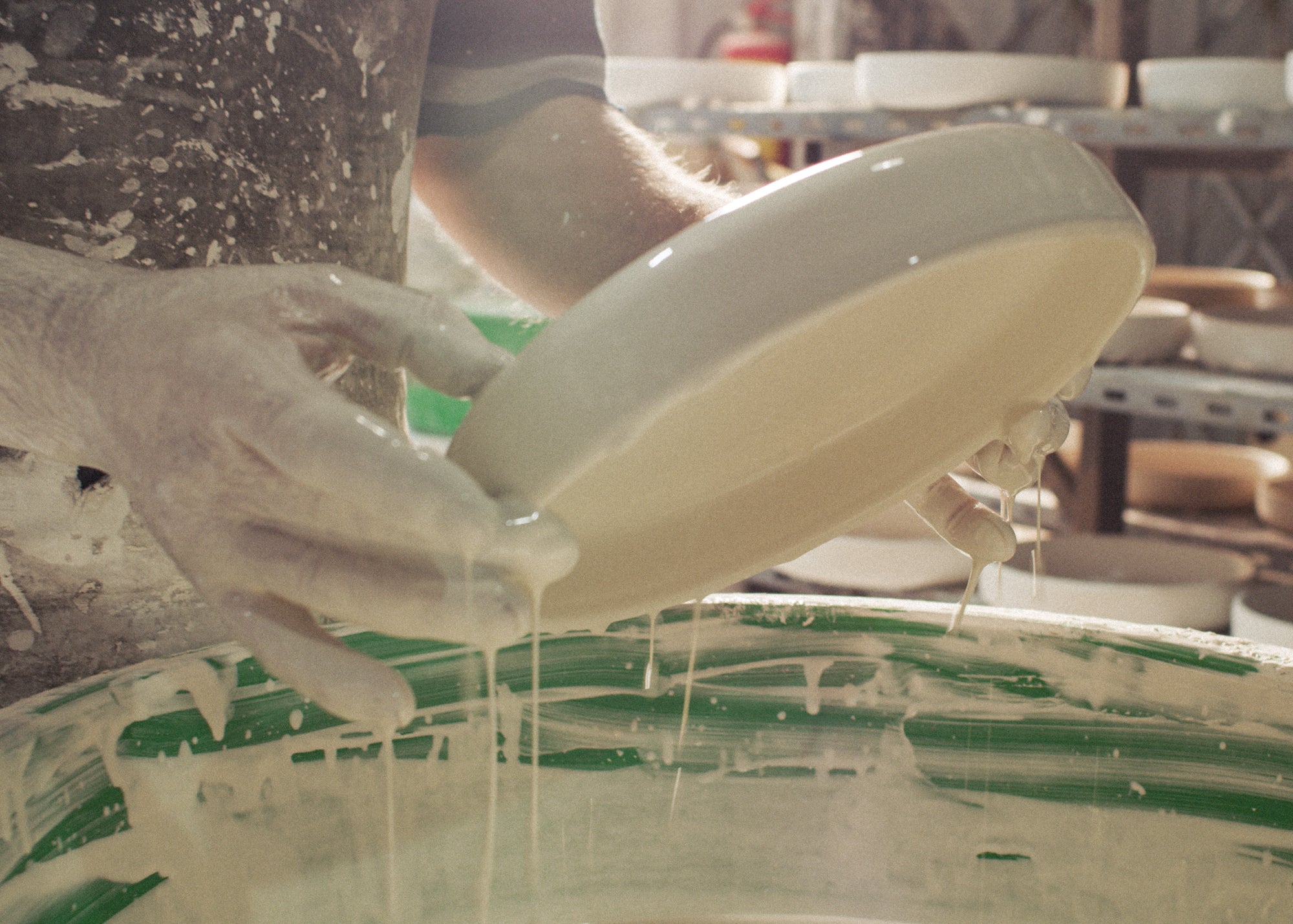 Durch den Brennvorgang verschmilzt die Glasur mit der Keramik und verleiht ihr eine widerstandsfähige Oberfläche.